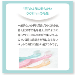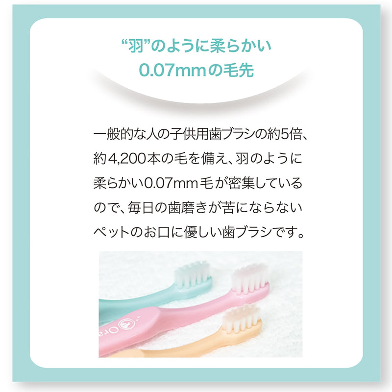 一般的な子供用歯ブラシの5倍以上にあたる約4,200本の毛を使用し、0.07mmの“羽のように柔らかい”極細毛が密集。